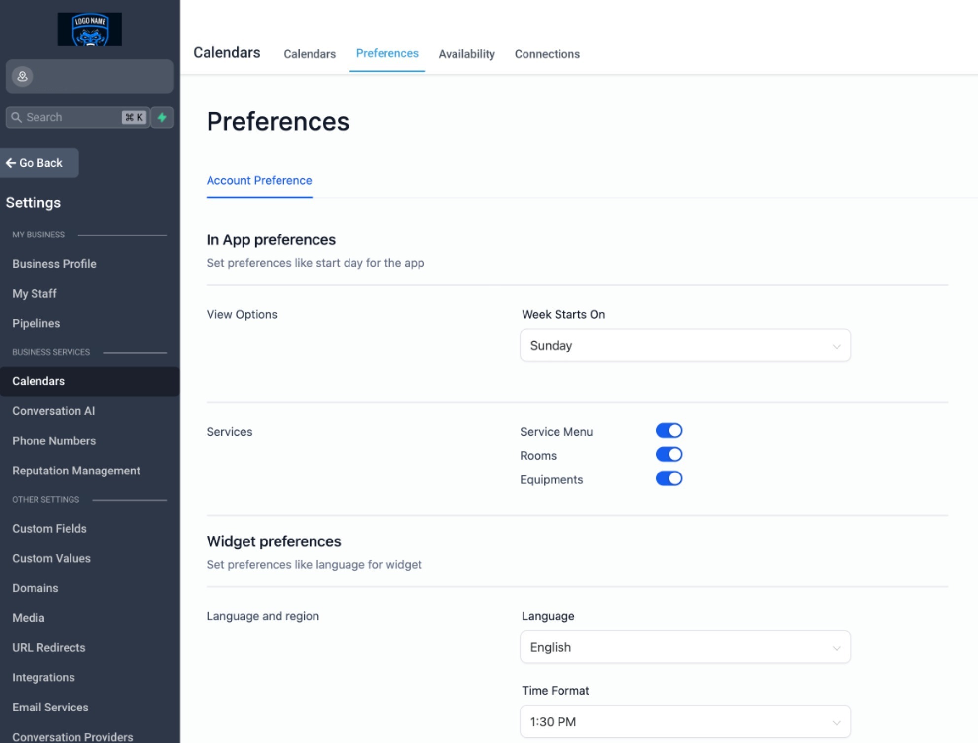 - Start by logging in to your sub-account > Go to Calendars > Calendar Settings