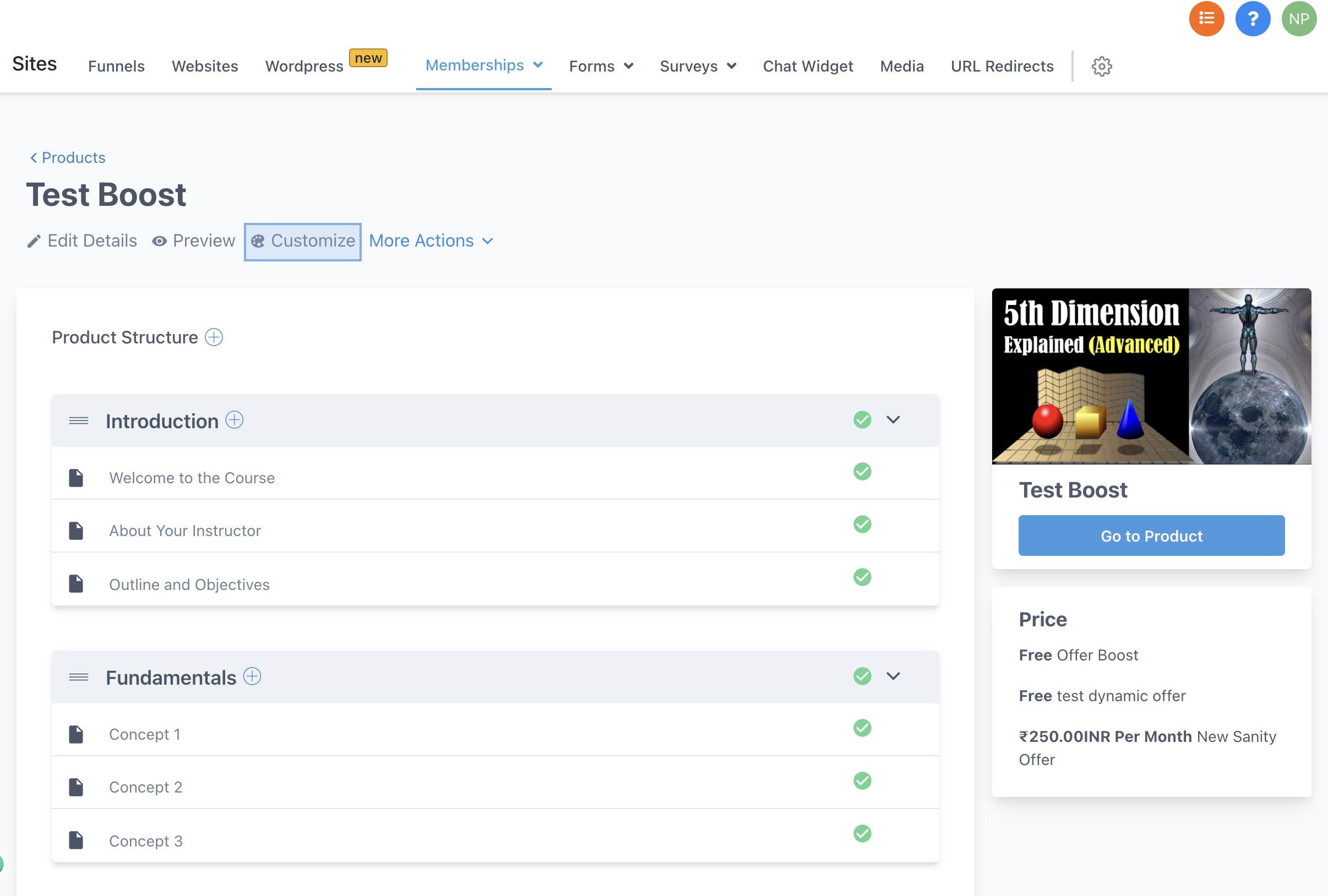 Sites->Membership->Products->Customize->Gallery>Customize>Sections—> Lesson